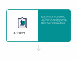 Para verificarmos se você se atende aos critérios de inclusão, você comparecerá a pelo menos a uma consulta no centro de pesquisa para responder a perguntas sobre sua saúde e sobre os medicamentos que está tomando e fazer alguns testes/exames.
